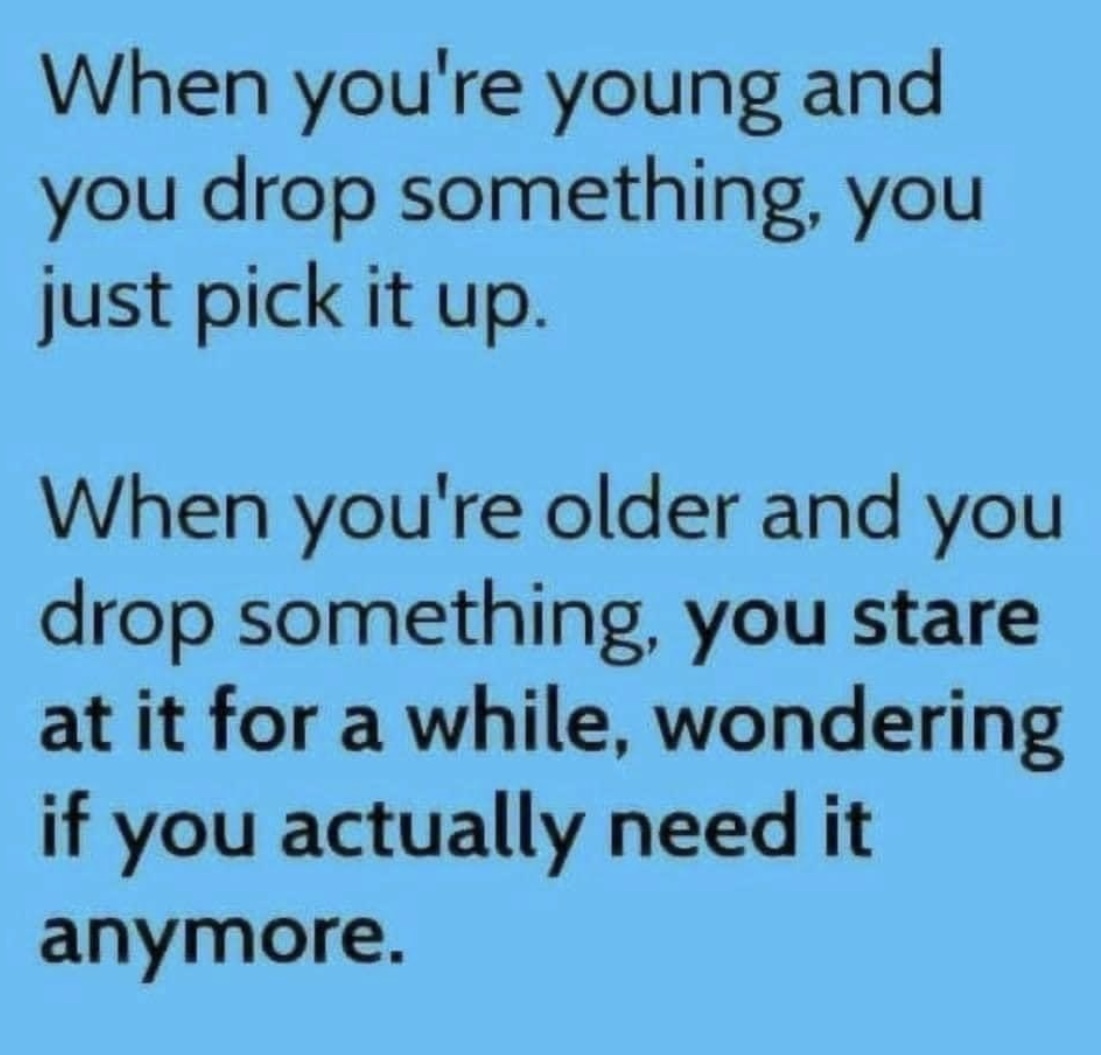 If/when you do, don’t bend over to pick something up without making sure you have something to hold on to.